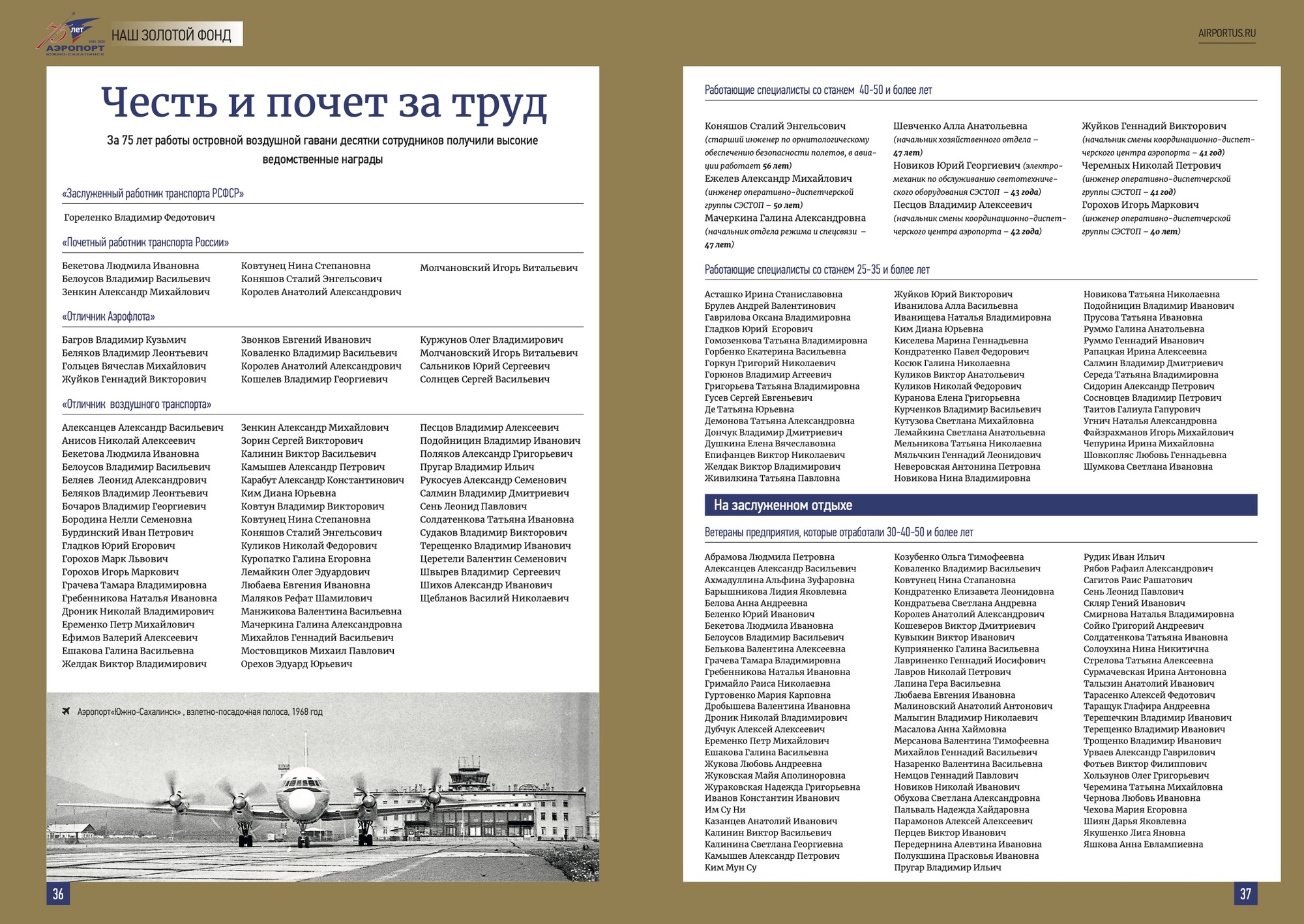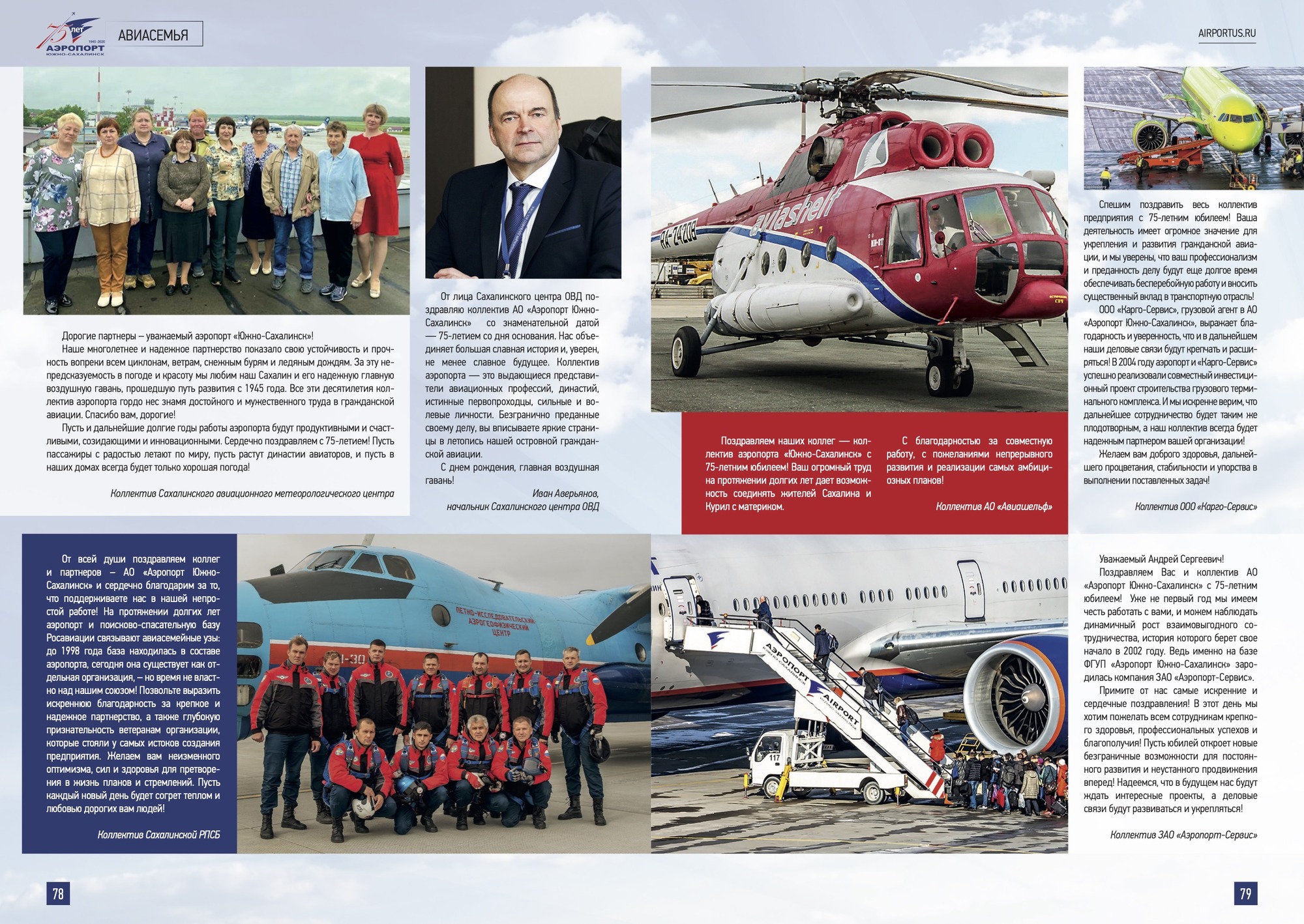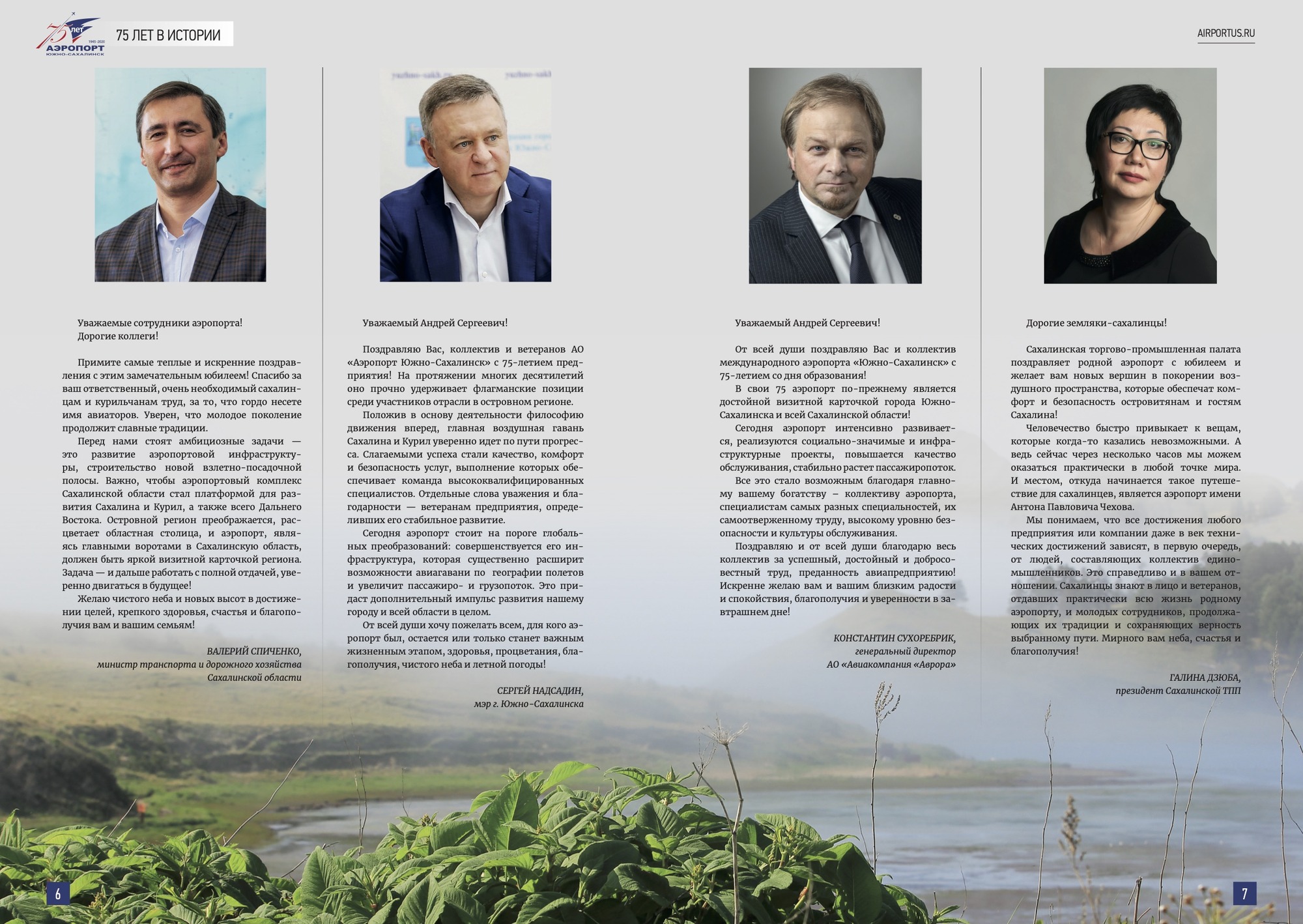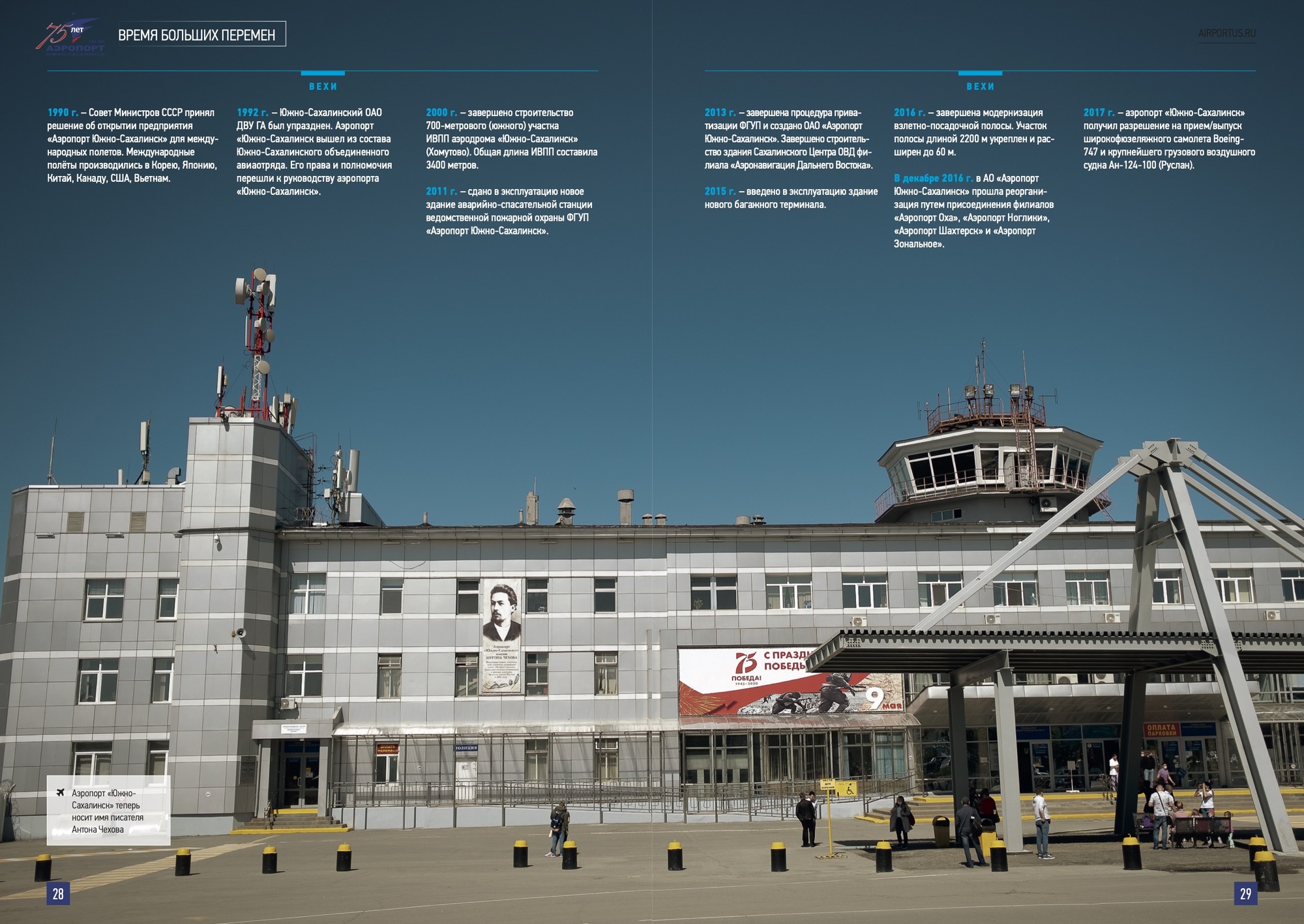 В 2020 году аэропорт «Южно-Сахалинск» отметил 75-летие со дня образования. В честь этого знаменательного события был подготовлен специальный выпуск информационно-аналитического журнала «Сахалин»: «Под мирным небом Сахалина. История в лицах».
