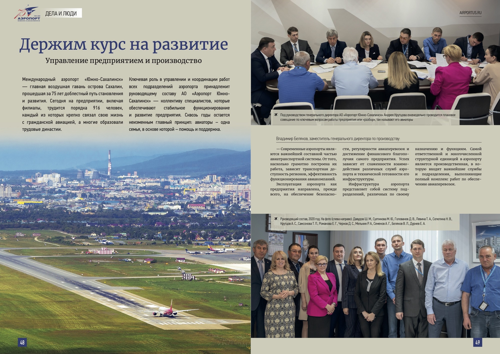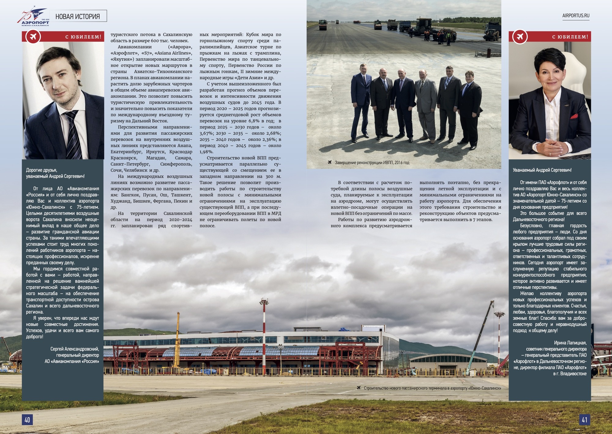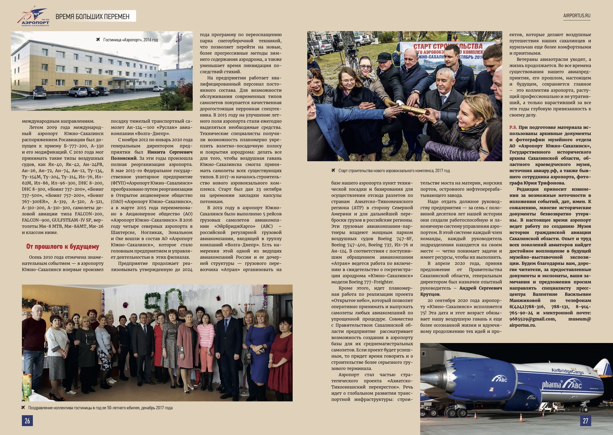 В этом выпуске опубликована первая редакция истории развития и становления гражданской авиации на Сахалине, в лицах представлены подразделения АО «Аэропорт Южно-Сахалинск», а также событийный ряд аэропортовой деятельности и социальной жизни коллектива.