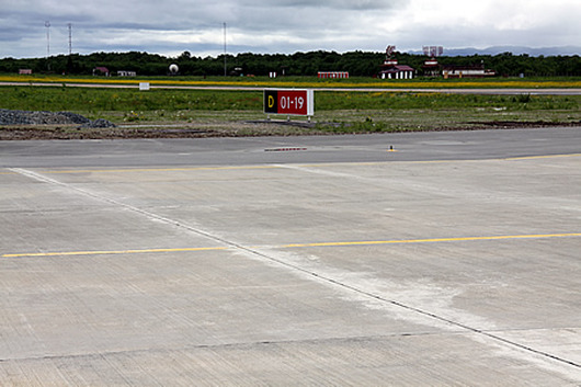 Как пояснил заместитель директора по наземному обеспечению полетов аэропорта «Южно‐Сахалинск» Н.С. Полонский, состоялась приемка государственной комиссией одного объекта – рулежной дорожки №4 с системой светосигнального оборудования и высокомачтовыми опорами освещения. РД-4 и северная часть перрона (с новым покрытием, шириной 50 метров) позволяют использовать их для движения воздушных судов всех существующих категорий без ограничения по массе, габаритам и нагрузке на бетон (за исключением пока разве что Аirbus-380).