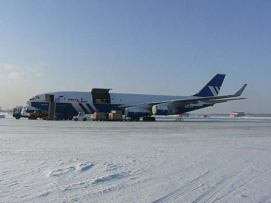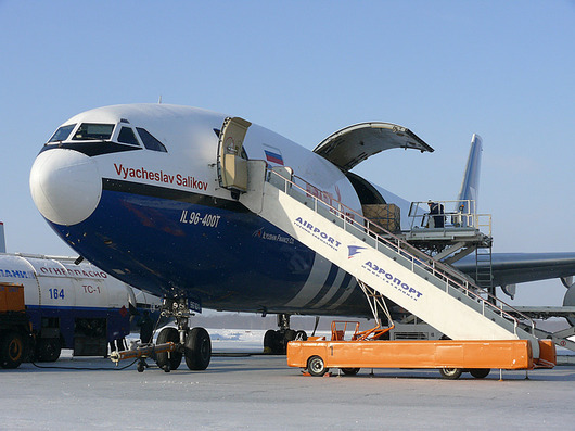 Это не первый коммерческий полет данного дальнемагистрального грузового самолета в наш островной аэропорт. Первый ИЛ-96–400Т прибыл в Южно‐Сахалинск в октябре 2011 года.