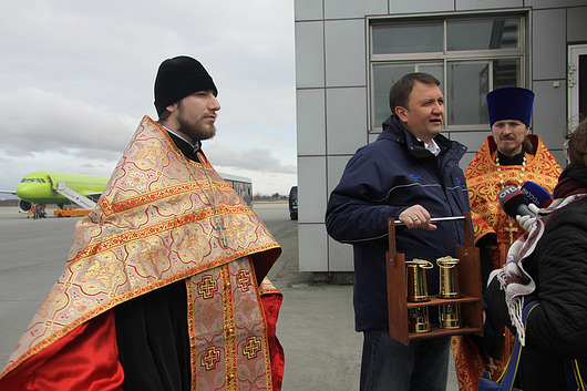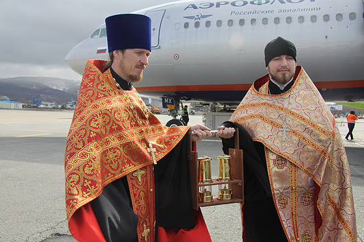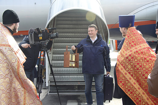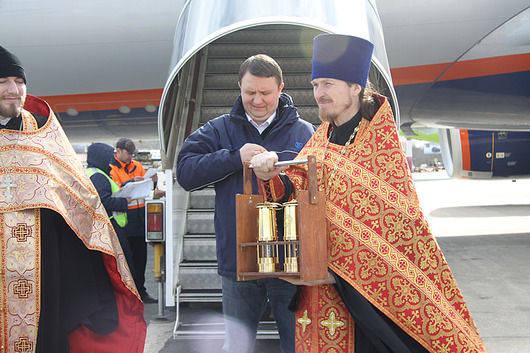 Сегодня утренним московским рейсом «Аэрофлота» члены благотворительного фонда Андрея Первозванного доставили в Южно‐Сахалинск Благодатный огонь из Иерусалима.