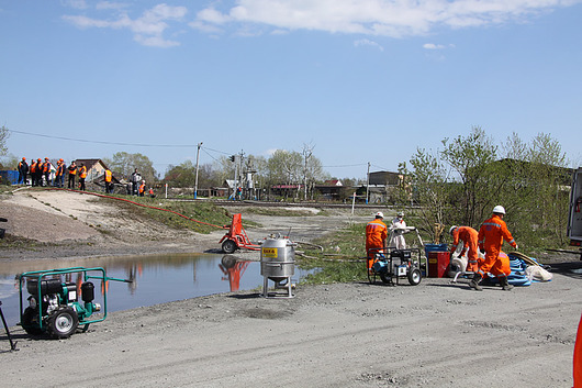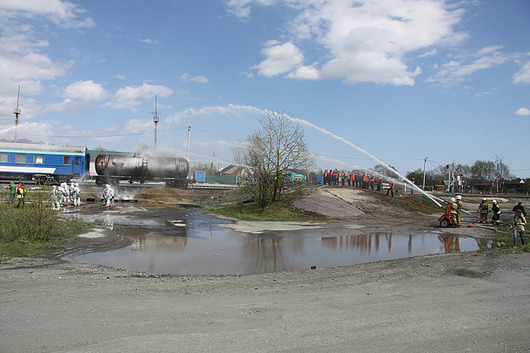 Учения проводились на железнодорожной станции «Христофоровка» По легенде на станции произошло столкновение пассажирского поезда и локомотива с цистернами. После удара цистерна опрокинулась. В результате опрокидывания в емкости образовалась трещина, произошел разлив нефтепродуктов с последующим возгоранием.