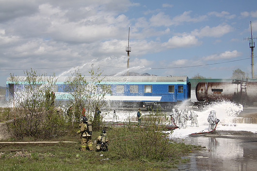 20 мая пожарные‐спасатели аэропорта «Южно‐Сахалинск» участвовали в учениях ГУ МЧС России по Сахалинской области по ликвидации аварии на железнодорожном транспорте.
