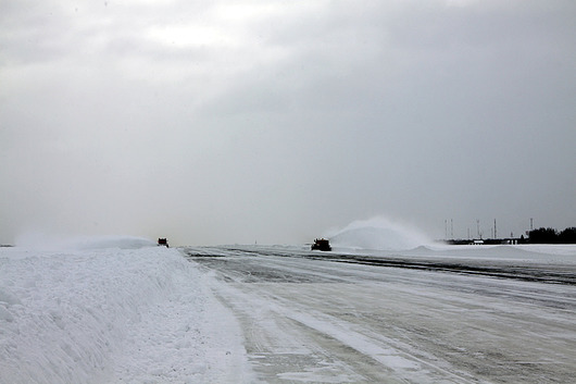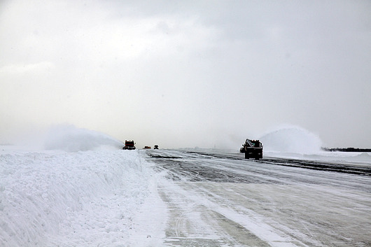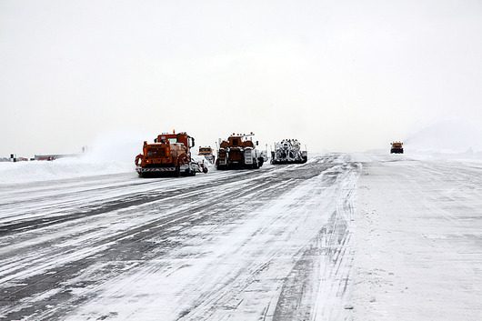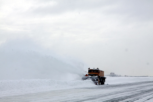 Как сообщил начальник аэродромной службы нашего аэропорта Эдуард Орехов, заблаговременно до сильного циклона ВПП была обработана специальным химическим реагентом, на который и лег снег. В настоящий момент это значительно сокращает время очистки полосы.