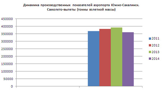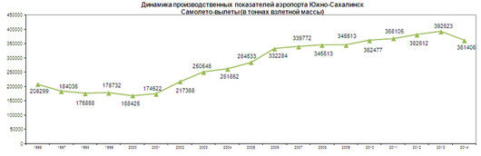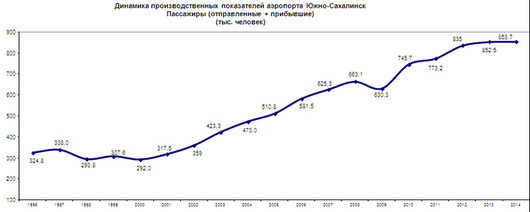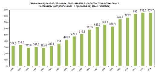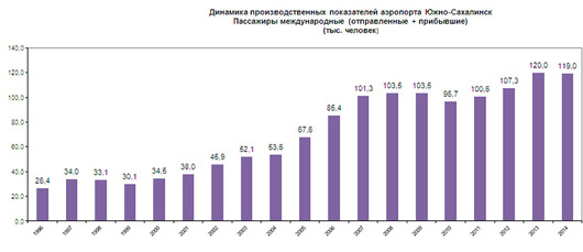 Причинами невысокого увеличения числа пассажиров в аэропорту «Южно‐Сахалинск» в 2014 году также служат и не ежедневные полеты авиакомпании «Трансаэро» в Москву, а только 4 раза в неделю, и прекращение этой же авиакомпанией выполнения чартерного рейса в Бангкок с весны 2014 года.
