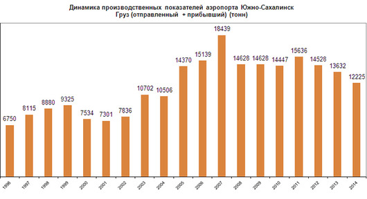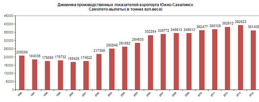 Одним из основных факторов таких результатов производственной деятельности ОАО «Аэропорт «Южно‐Сахалинск» в прошедшем году является объединение авиакомпаний «Владивосток Авиа» и «Сахалинские авиатрассы» в единую дальневосточную авиакомпанию «Аврора», входящую в группу «Аэрофлот». В связи с этим была оптимизирована маршрутная сеть, и число рейсов в аэропорту «Южно‐Сахалинск» сократилось.