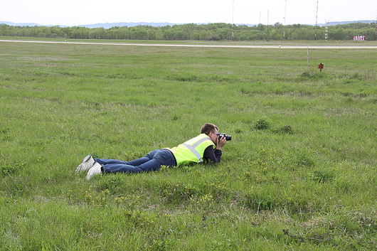 Фотосъемка велась с самых разных ракурсов — с вышки КДП Центра ОВД, на перроне, в непосредственной близости от взлетно‐посадочной полосы, на стоянках ВС и с крыши старого здания службы поискового и аварийно‐спасательного обеспечения полетов, за взлетно‐посадочной полосой (на объездном пути). Имея возможность передвигаться практически по всему аэродрому в предоставленном аэропортом автобусе, в течение всего дня участники фотоохоты снимали инфраструктуру аэропорта и взлет/посадку самолетов, стараясь максимально близко поймать в объектив точку касания лайнера земли или точку отрыва. Между рейсами команда фотографов не унывала и не скучала, весело проводя время в дружеской беседе, обедали в кафе «Торговой компании» на территории аэропорта.