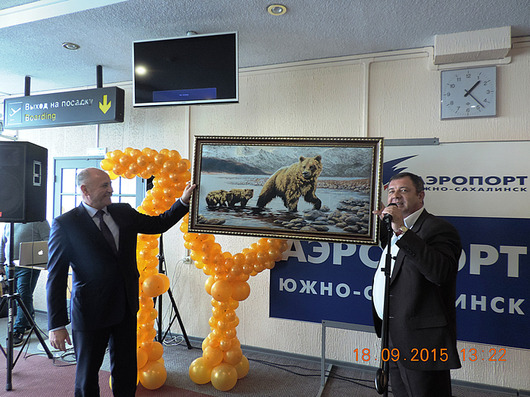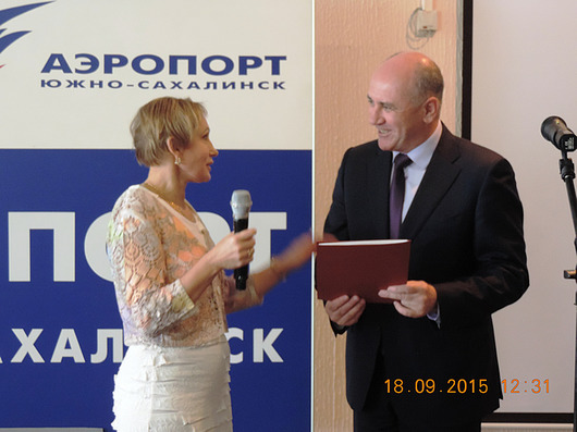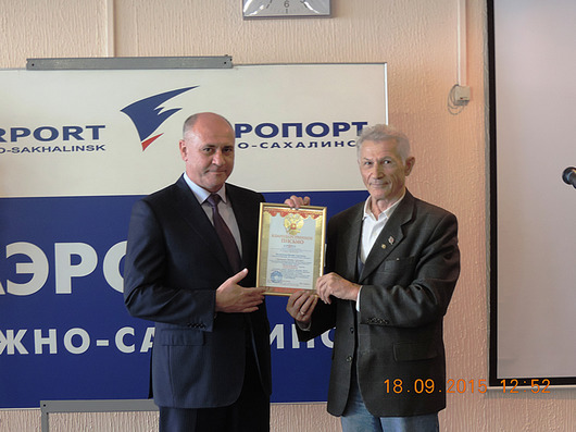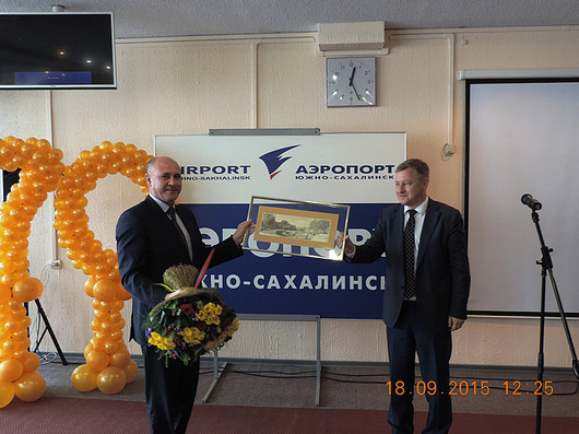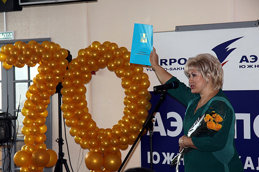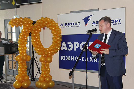 По случайному, хотя, может быть, и не очень случайному совпадению наград удостоены именно семь десятков сотрудников аэропорта, что очень символично для нашей даты. Среди них почетные грамоты и благодарности – от Министерства транспорта Российской Федерации, Правительства Сахалинской области и губернатора, Министерства транспорта и дорожного хозяйства Сахалинской области, Администрации города Южно‐Сахалинска, Областной и Городской Думы, и, конечно, большая часть — от руководителя самого авиапредприятия Никиты Сергеевича Полонского.