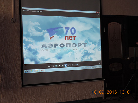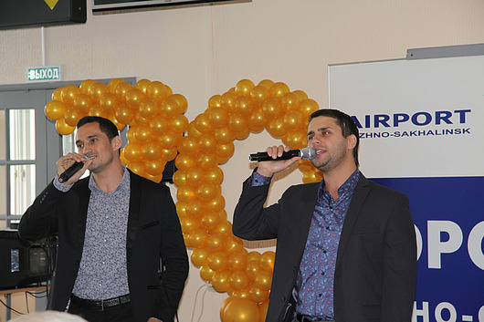 Поздравила работников и сахалинская группа «Небо», очаровавшая женскую половину коллектива авиапредприятия. На собрании вниманию сотрудников и ветеранов был презентован и новый фильм про аэропорт, снятый к его 70-летию. Завершилось торжественное мероприятие неформальным общением за легким праздничным фуршетом.
