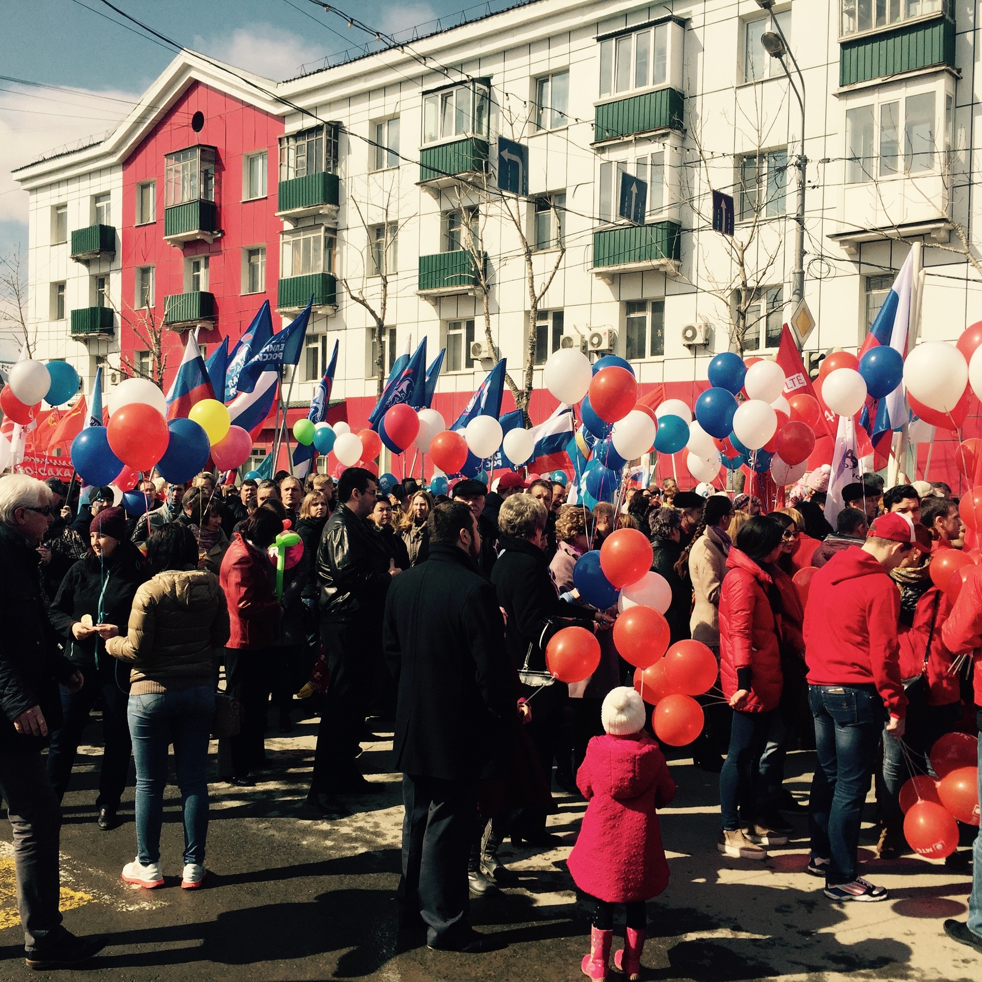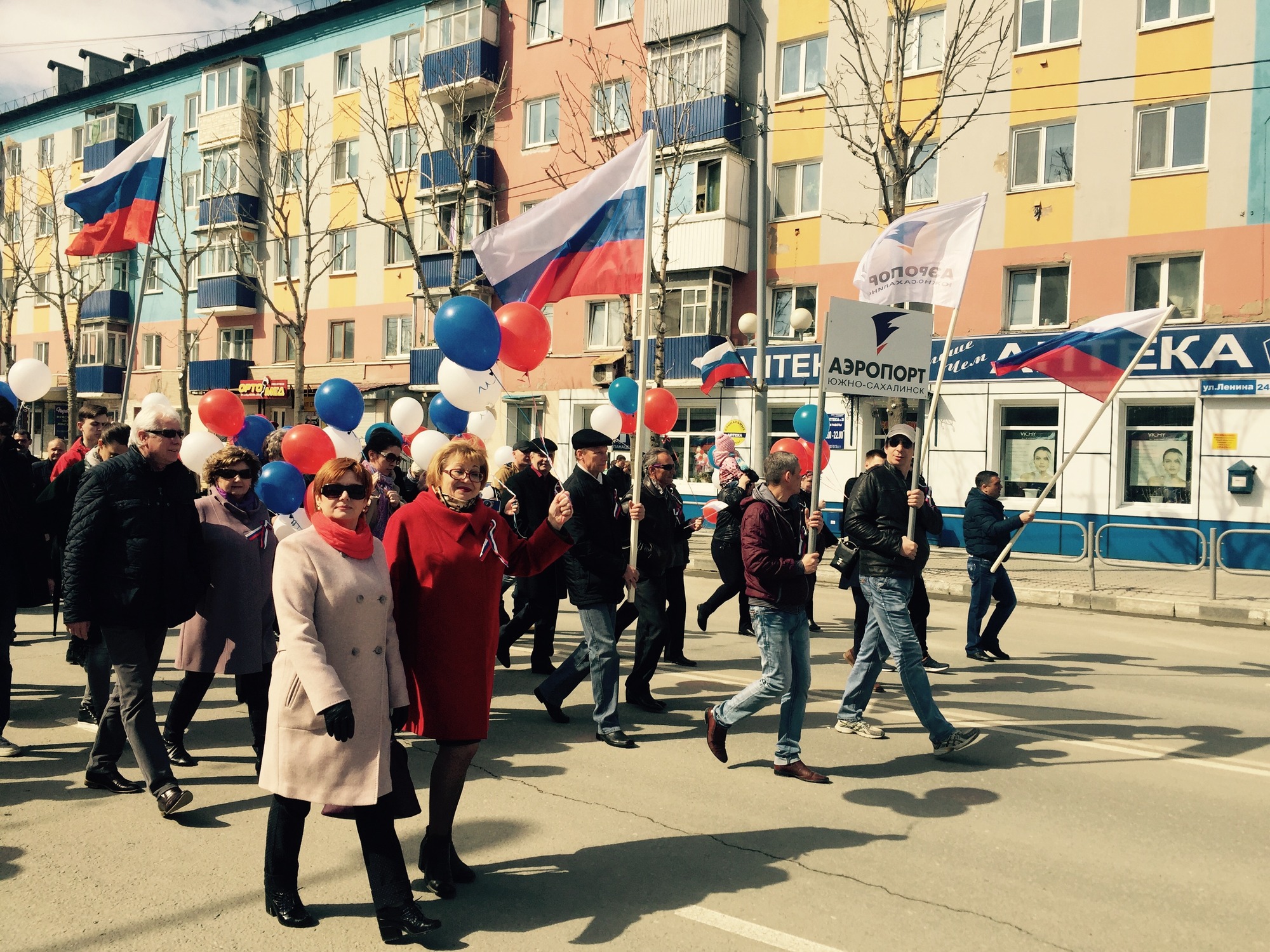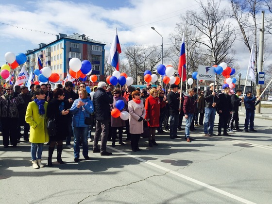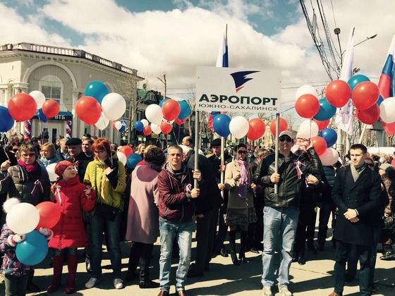 Коллектив АО «Аэропорт Южно‐Сахалинск» принял участие в традиционном ежегодном первомайском шествии