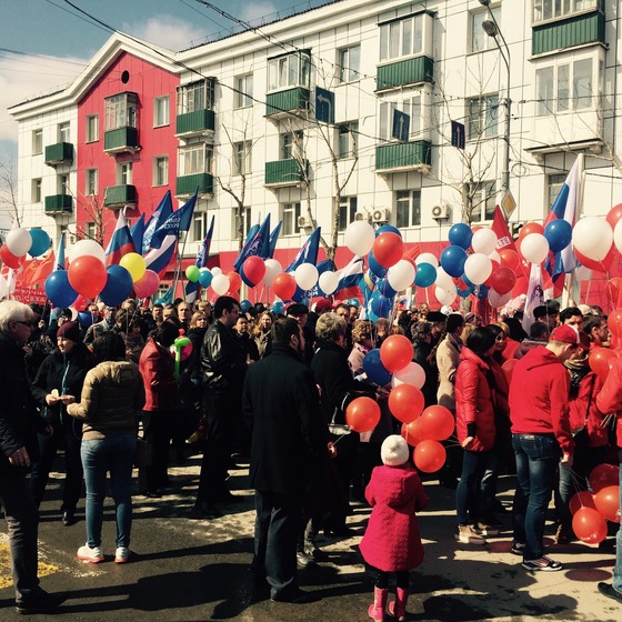 Коллектив АО «Аэропорт Южно‐Сахалинск» принял участие в традиционном ежегодном первомайском шествии. Яркие воздушные шары в цветах российского флага, праздничная атрибутика, гармонист с песнями на авиационную тематику и просто патриотическими в нашей колонне, плюс Светлое Христово Воскресение и теплая солнечная погода- все это создало настроение первомайского утра!