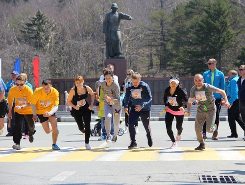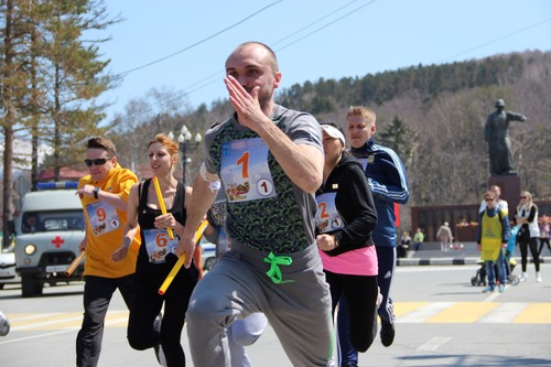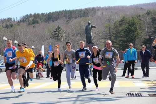 14 мая на площади Славы Южно‐Сахалинска состоялась торжественная церемония открытия легкоатлетической эстафеты на призы городской Думы Южно‐Сахалинска, посвященной Дню Победы в Великой Отечественной войне. На прохождение дистанции совместно со школьниками и студентами средних и высших учебных заведений также вышли и представители 24-х предприятий города. Для них легкоатлетическая эстафета сегодня стала первым этапом общегородской Спартакиады трудовых коллективов – совместного проекта Министерства спорта и молодежной политики Сахалинской области и Администрации Южно‐Сахалинска.