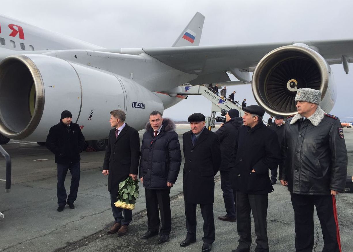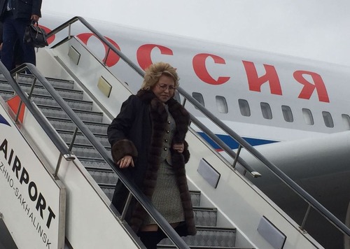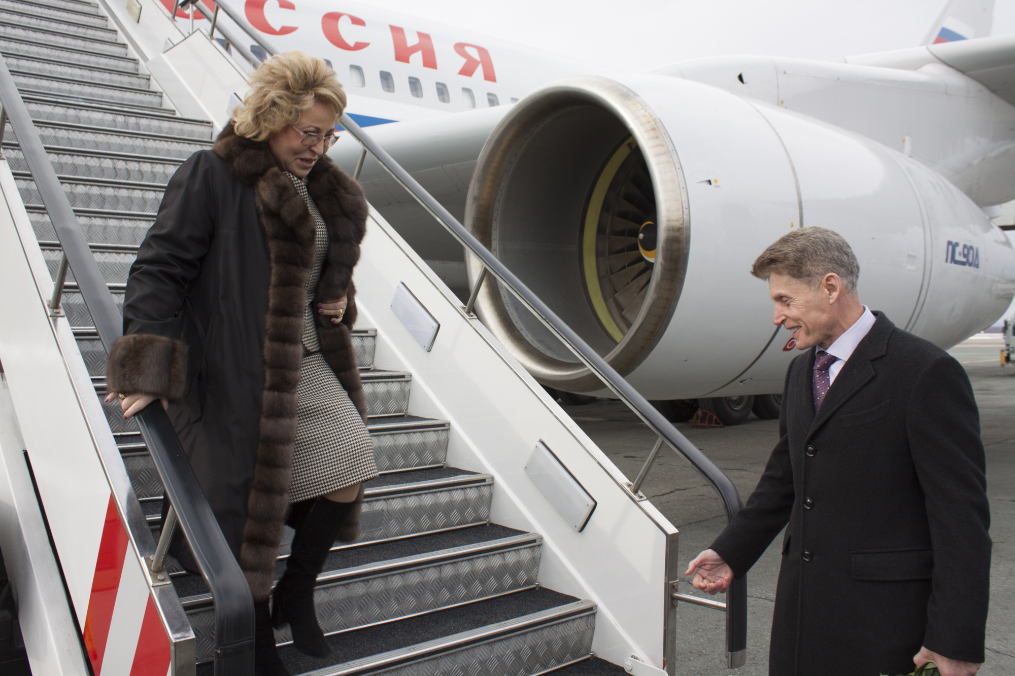 30 октября 2016 года. Событие дня: Сегодня Председатель Совета Федерации Валентина Матвиенко впервые прилетела на Сахалин. В аэропорту «Южно‐Сахалинск» Валентину Ивановну встречала делегация Правительства Сахалинской области во главе с губернатором Олегом Кожемяко.