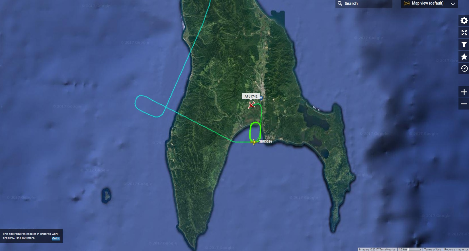 Рейс а/к «Аэрофлот» Москва‐Южно-Сахалинск, https://www.flightradar24.com/AFL1742/c46e257