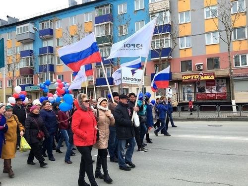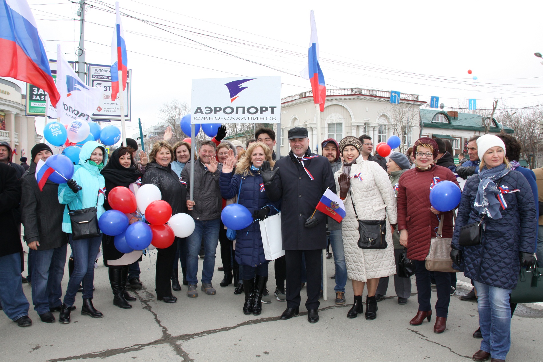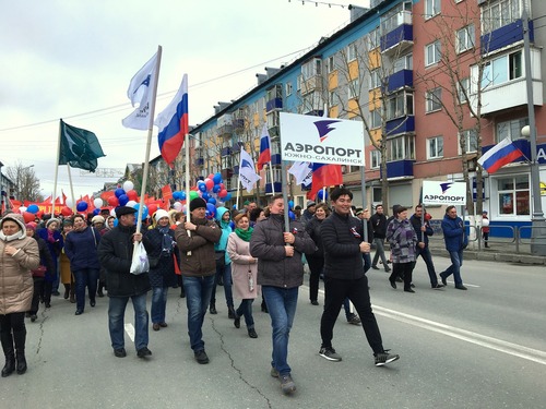 Коллектив АО «Аэропорт Южно‐Сахалинск» по традиции принял активное участие в ежегодном параде в честь праздника 1 мая – Дня Весны и Труда. В праздничном шествии, проходившем по центру города, приняли участие политические партии, общественные объединения и самые разные коллективы предприятий города.