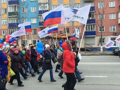 Отсутствие солнца и ветреная погода не стали помехой для яркого настроения коллектива аэропорта. Колонна предприятия с воздушными шарами и флагами была оформлена в праздничный триколор, а настроение участникам шествия задавал приглашенный гармонист. Песни военных лет и частушки как нельзя кстати звучали на праздничном мероприятии, а соседние колонны с удовольствием подхватывали веселые ритмы.