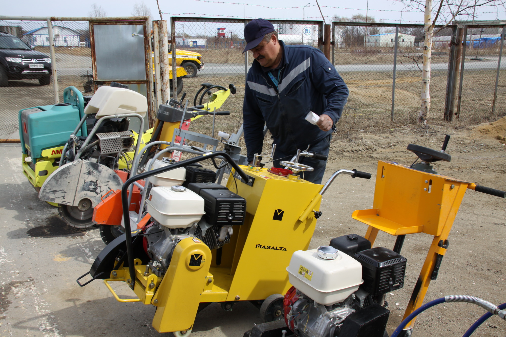 Техника для ремонта ИВПП, для нарезки швов и разделки трещин. Обновление этих механизмов в АО «Аэропорт Южно‐Сахалинск» произошло за последние два года