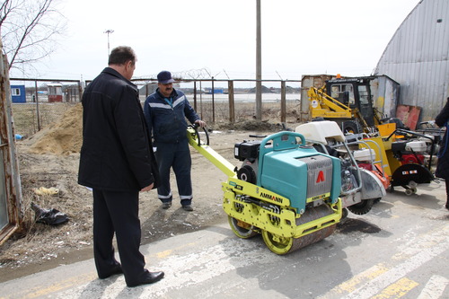 Самоходный виброкаток для ремонта асфальтобетонных покрытий ИВПП. С помощью этой техники аэродромная служба аэропорта может своими силами оперативно произвести небольшой ремонт покрытий ИВПП
