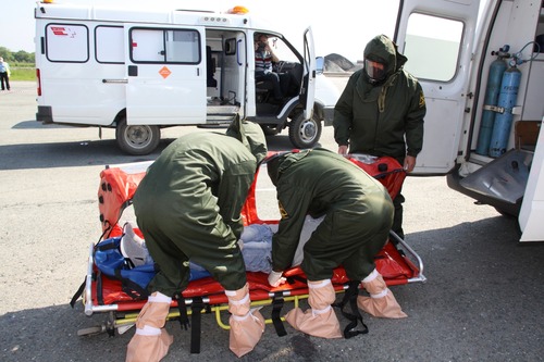 В ходе мероприятия был отработан алгоритм необходимых действий при выявлении на борту воздушного судна пассажира с подозрением на заражение опасной инфекцией. В первую очередь, согласно алгоритму действий, больная и контактные лица первого порядка в индивидуальном режиме прошли таможенный и пограничный контроль, сотрудники которых были в специальных защитных костюмах. Контактные лица второго порядка прошли медицинское обследование. Бригадой дезинфекторов была проведена полная дезинфекционная обработка воздушного судна, багажа и ручной клади. Больная была госпитализирована в инфекционный стационар.