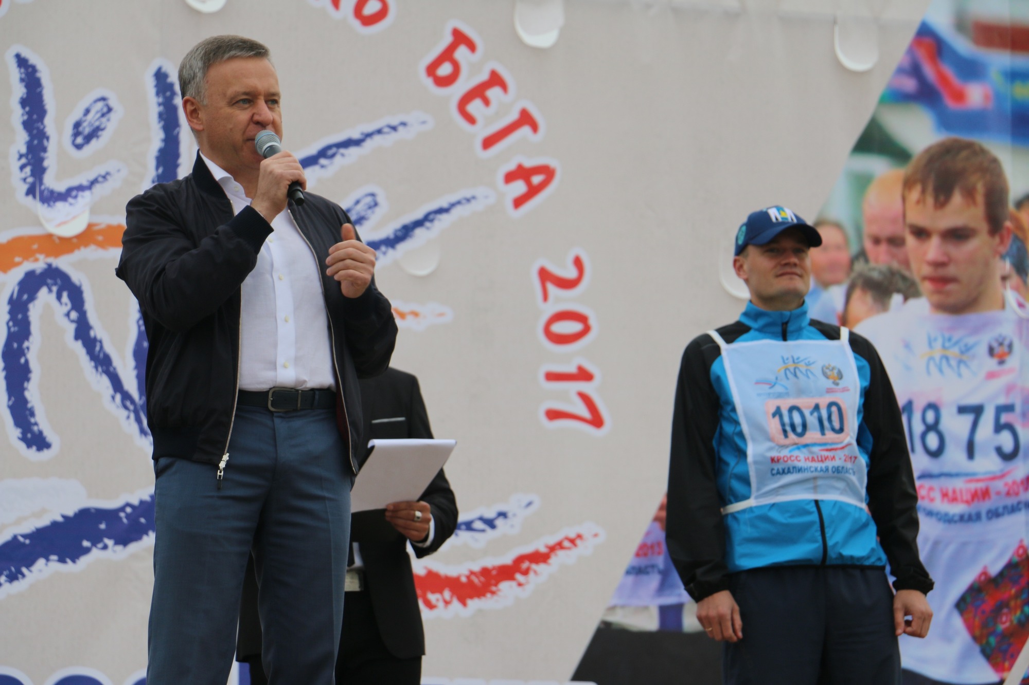 Перед началом забега мэр Южно–Сахалинска Сергей Надсадин и заместитель председателя Правительства Сахалинской области Антон Зайцев поприветствовали спортсменов и пожелали участникам удачного старта и хорошего настроения.