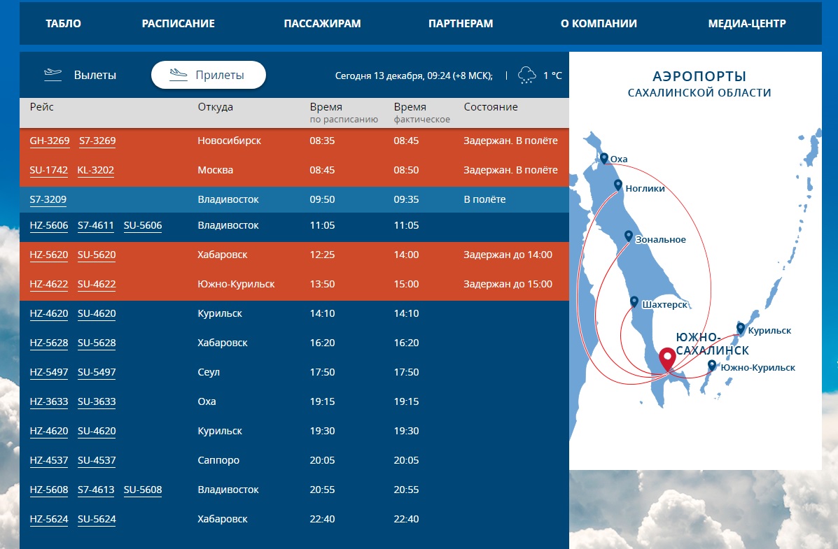 Информация о задержанных рейсах: