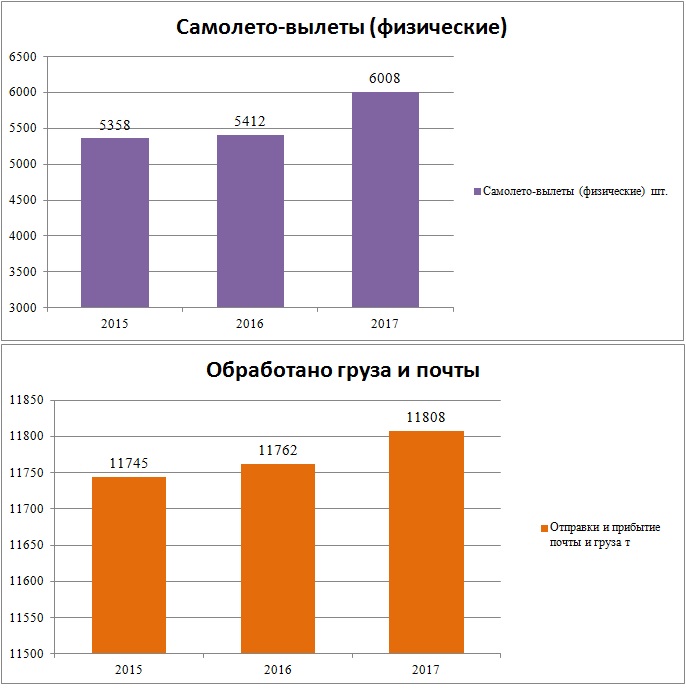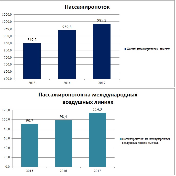 Всего за 2017 год в аэропорту областной столицы было выполнено 6008 самолето-вылетов, что превысило предыдущий показатель на 11%, из них – 890 на международных воздушных линиях (рост на 6,7%).