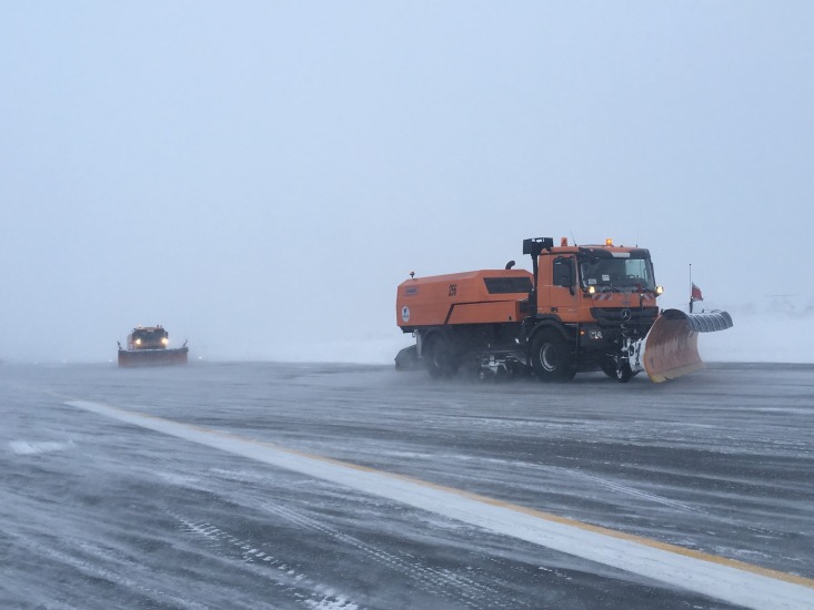 Аэропорт открыт и работает по фактической погоде. На взлетно-посадочной полосе, территории аэродрома и привокзальной площади ведется расчистка снега, работает более 15 единиц техники. Все службы, задействованные в обслуживании пассажиров и аэродрома работают в усиленном режиме. авиакомпании занимаются расселением пассажиров задержанных рейсов.
