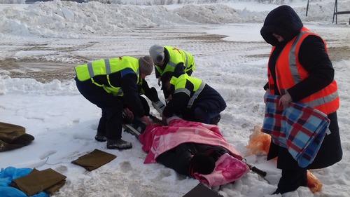 За считанные минуты в 10:08 пожар был локализован и ликвидирован. На земле условно пострадавшие были уложены на носилки и доставлены в медицинский лагерь на место сортировки для определения степени тяжести травм и оказания первой медицинской помощи.
