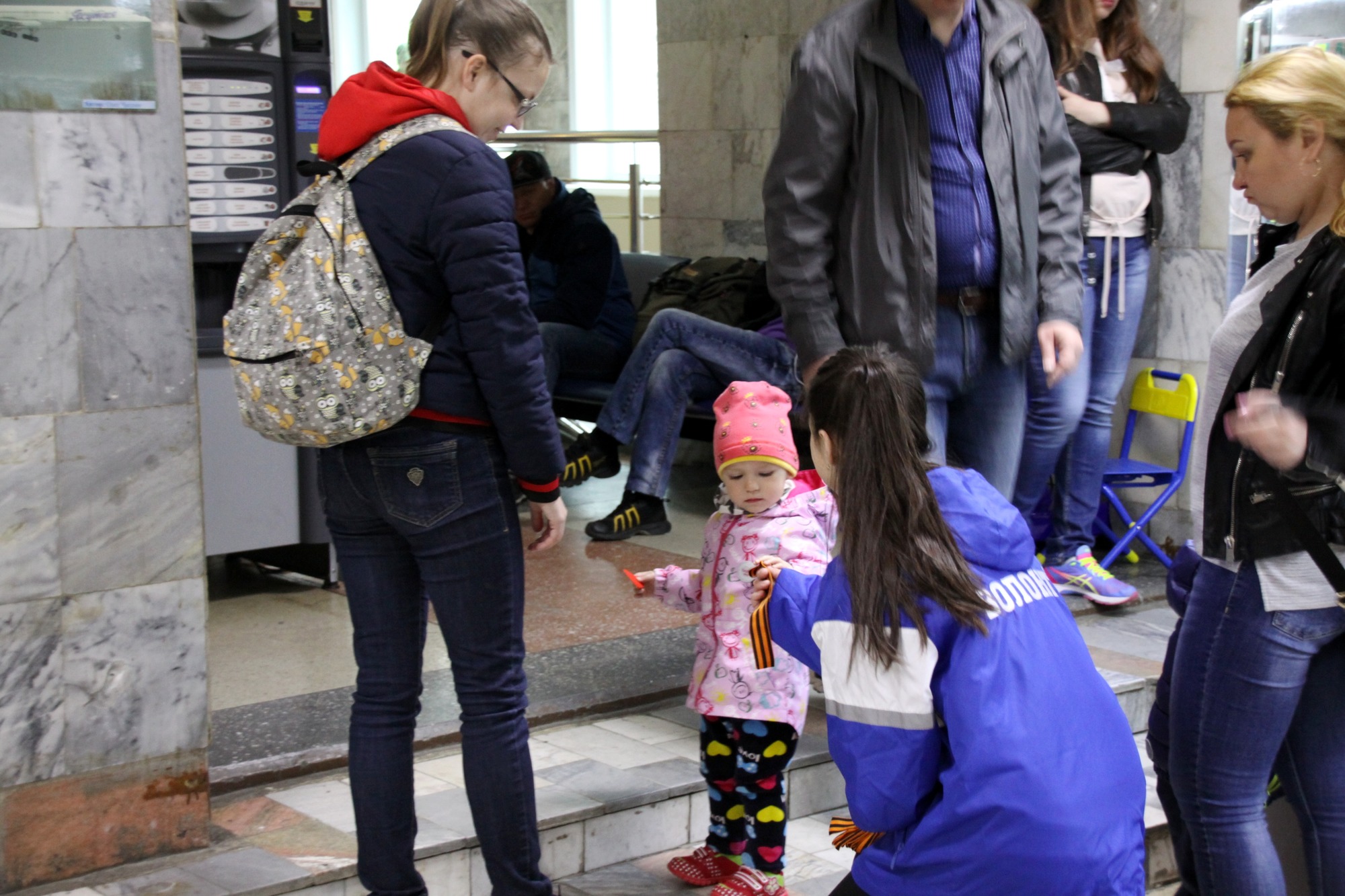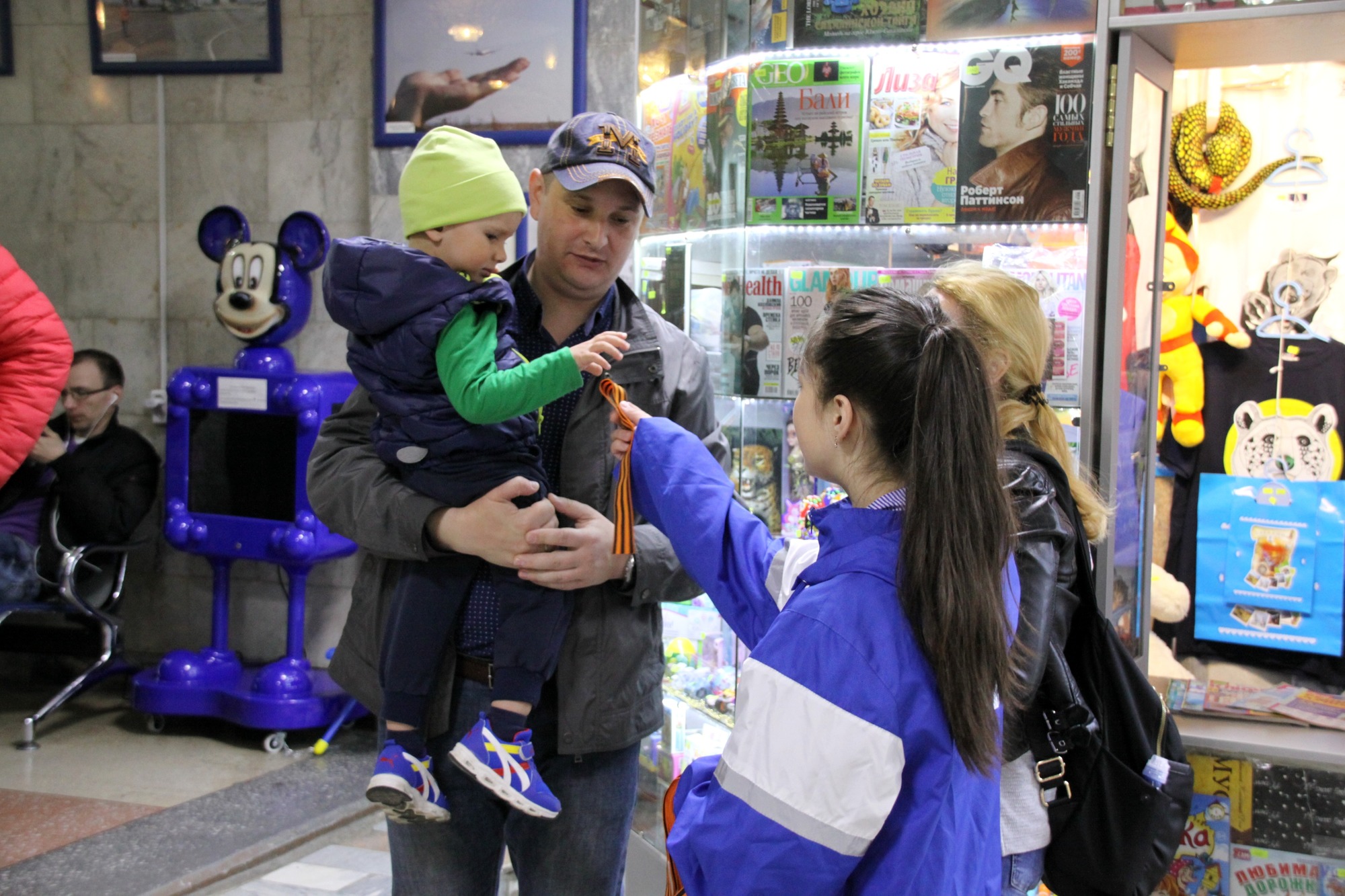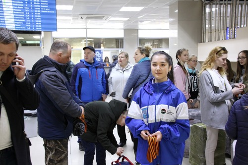 В очередной раз аэропорт «Южно-Сахалинск» присоединился к проведению всероссийской патриотической акции «Георгиевская ленточка». 3 мая 2018 года волонтеры Центра молодежных инициатив г. Южно-Сахалинска поздравляли пассажиров воздушной гавани с предстоящим праздником и вручали всем желающим символ Победы.