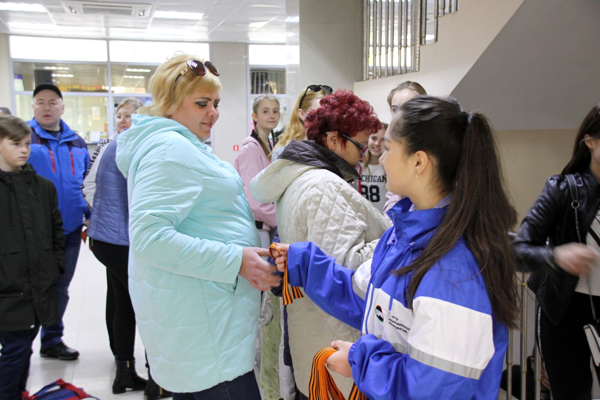 За время акции в аэропорту было роздано порядка 300 лент.