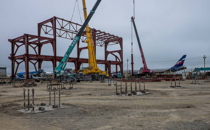 Возведение современного аэровокзала на территории действующих воздушных ворот ведётся по плану и с учётом минимизации неудобств для пассажиров, сообщил во время визита на строящийся объект губернатора региона Александр Веклич, генеральный директор компании-подрядчика - Сахалинской механизированной колонны № 68. На строительной площадке работают 160 человек и более 40 единиц техники. Введена в эксплуатацию комплексная трансформаторная подстанция, продолжается прокладка высоковольтной кабельной линии. На 80 процентов готова автономная котельная, произведена гидроизоляция и обратная засыпка двух пожарных резервуаров общим объемом 900 кубических метров. Ведется устройство траншей для укладки трубопроводов сетей водоснабжения и канализации.