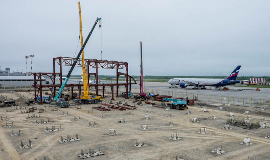 В июле строители намерены закончить фундаментные работы и полностью сосредоточиться на монтаже каркаса основного здания аэровокзала. Первые 2360 тонн металлоконструкций доставлены на строительную площадку и подготовлены к предстоящей работе. Вторая партия – 2036 тонн – поступит в начале июля, третья – еще около 3000 тонн – в августе.