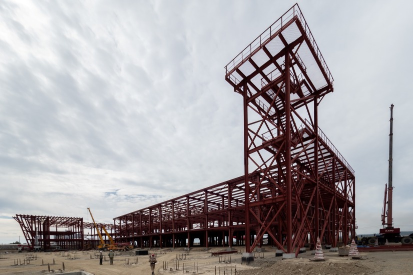 Здание нового аэровокзального комплекса главной воздушной гавани Южно-Сахалинска стало ещё выше и шире – к концу сентября рабочие смонтировали 4170 тонн металлоконструкций. Для сравнения: в августе этот показатель был равен 2300 тонн. На сегодняшний день смонтировано два блока корпуса здания, что составляет половину от общего объема терминала.