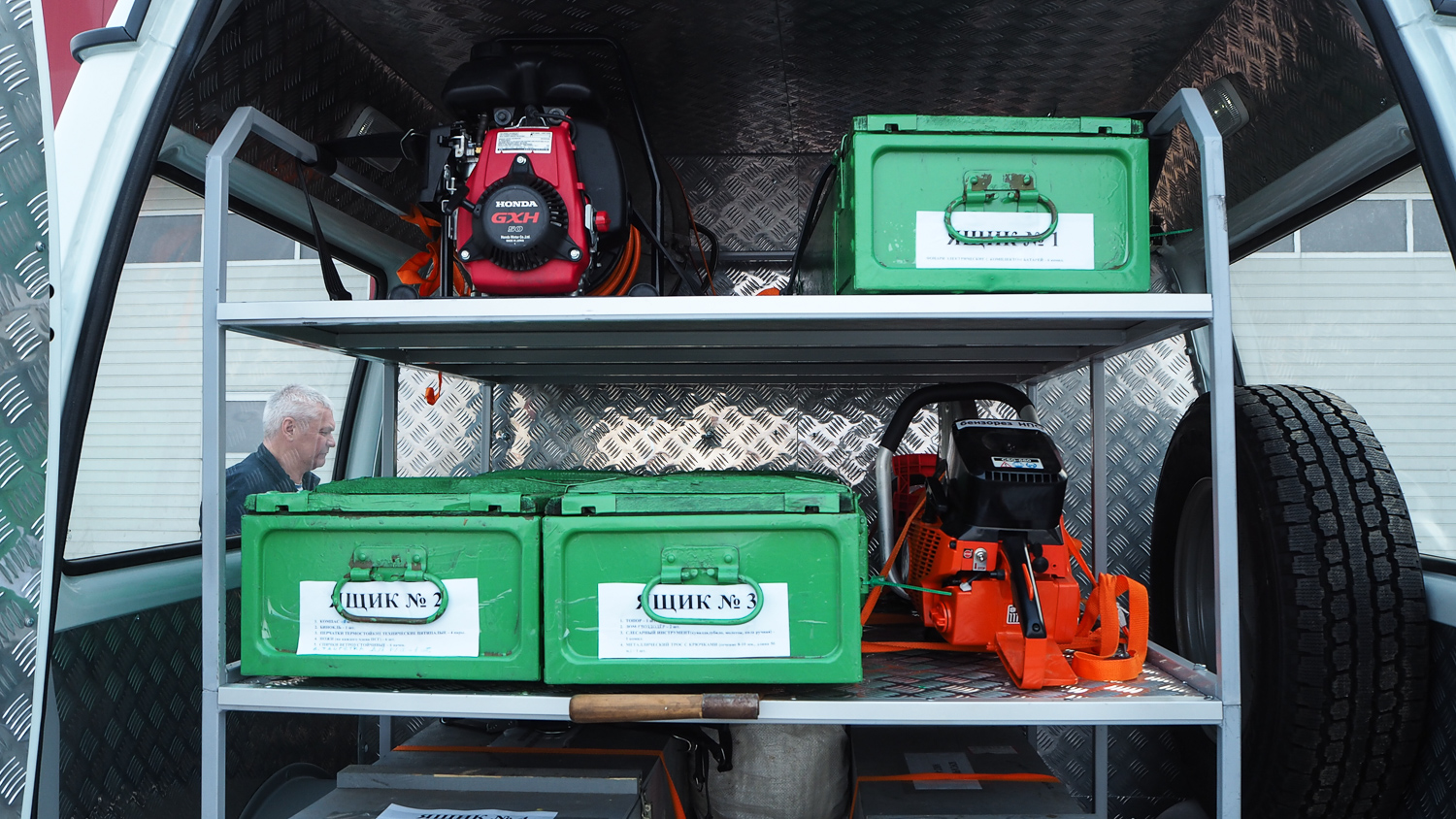 «Соболь» укомплектован бытовыми предметами вроде спальных мешков, палаток, горелок, термосов, посуды и продуктового пайка, которого должно хватить на три дня работы в «полях» для команды из 7 человек. Еще одну важную часть необходимого «багажа» составляет специализированное оборудование автомобиля. Спасательный перечень «Соболя» широк. В кузове автомобиля находится комплект «инструментов», которые обычно используют в МЧС: гидравлические ножницы, мини-подъемники и зажимы, которые могут помочь в процессе извлечения пострадавших. Кроме того, в перечне оборудования есть лопаты, ломы, дисковая пила, слесарные инструменты, огнетушители, радиостанции, сигнальные пистолеты, компасы, мощные фонари и системы освещения, тросы, лодка и лыжи. Для пострадавших – комплект медикаментов, носилки, кислород.