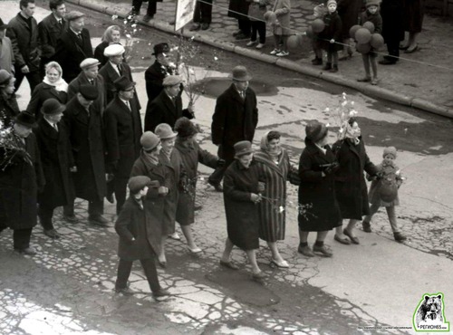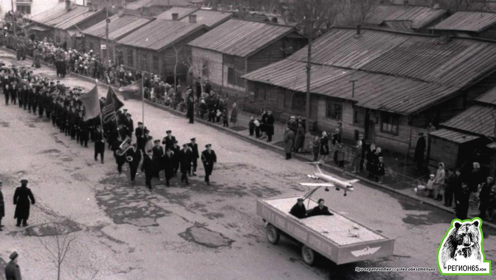 Фото из коллекции Ивана Воробьева. Фотографии сделаны автором с балкона дома на улице Ленина. Первомай 1965 года в Южно-Сахалинске.