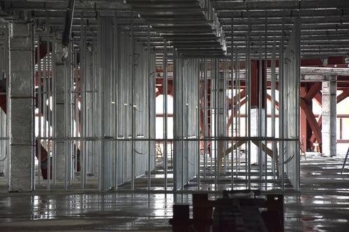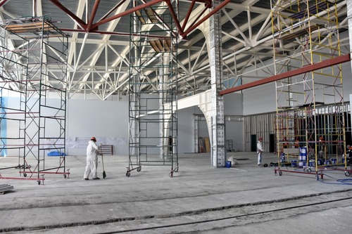 «Работы с металлокаркасом здания закончены. На днях пришла очередная партия в 1400 тонн, которая пойдет уже не на само здание, а на навес перед аэровокзальным комплексом. Фундамент под навес выполнен на 85%, монтаж этой части займет два месяца», – объяснил журналистам представитель технического заказчика Константин Ольшин.