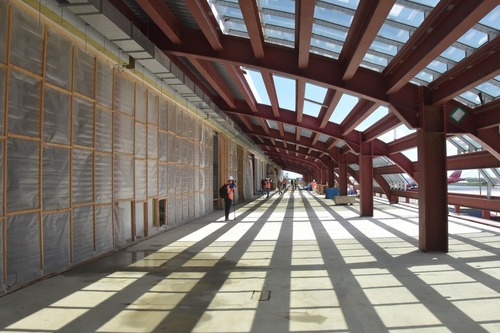 Спустя полтора года с начала возведения «скелет» нового аэровокзала практически готов. Кроме каркаса полностью завершены фундаментные работы и внешние коммуникации комплекса, а также готова котельная. На 85% выполнены перекрытия, продолжаются кровельные работы и остекление здания, строители активно трудятся над внутренними сетями объекта.