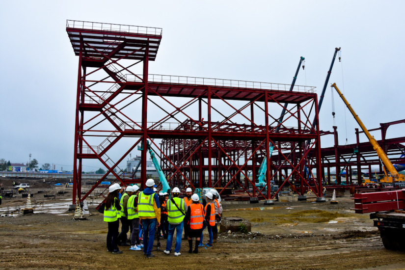Очередной запланированный пресс-тур на строительную площадку нового аэровокзального комплекса прошел сегодня в аэропорту «Южно-Сахалинск». Представители региональных средств массовой информации осмотрели возведение металлокаркаса здания и узнали о преимуществах будущего терминала воздушной гавани.