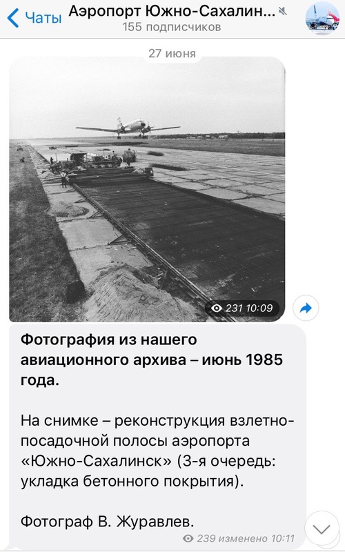 Аэропорт «Южно-Сахалинск» осваивается на просторах мессенджера Telegram. У главной воздушной гавани острова появился свой телеграм-канал: https://t.me/airportus. Основная задача, которую пытаются решить в пресс-центре аэропорта «Южно-Сахалинск» с помощью новой площадки — оперативное, а главное неформальное информирование сахалинцев и курильчан о новостях, связанных с главными воздушными воротами региона.
