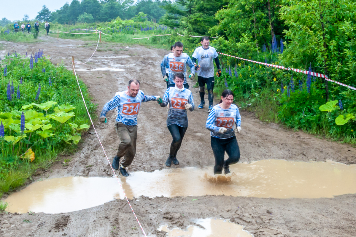 Дождь, грязь, адреналин и маршрут, созданный профессиональными военными — экстремальный забег на Пушистом в четвертый раз собрал самых выносливых любителей преодоления сложных рубежей. Впервые среди участников оказалась команда воздушной гавани «Аэропорт». На желтую линию старта «Сахалинского рубежа» после регистрации и медкомиссии, вышло пять молодых авиаторов — трое парней и две девушки. По словам участников команды «Аэропорт», особую пикантность забегу придал дождь. Мокро и влажно было не только под ногами, но и вообще везде. Стартовали по 2 команды одновременно с интервалом в минуту.