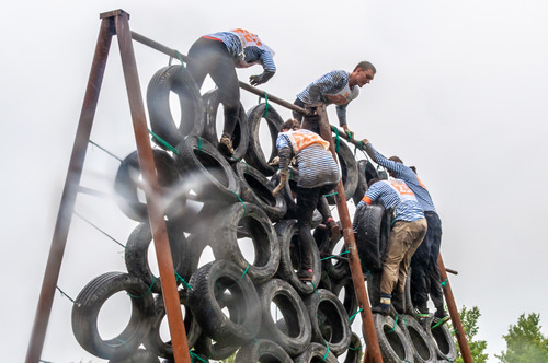Шестикилометровую дистанцию устилали покрышки, скользкие мосты, веревки, перекладины и бронетранспортеры. Причем участникам приходилось передвигаться не только по суше, но и по воде, преодолевая заводи и броды. Выйти сухим из воды на этом забеге не было шансов ни у кого.