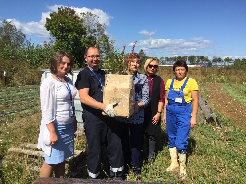 Передача саженцев в сентябре 2019. Представители службы аэронавигации Татьяна Наталочкина и Олег Меркушев, сотрудники аэропорта Валентина Манжикова, Виктория Бердник, Ирина Скрипова