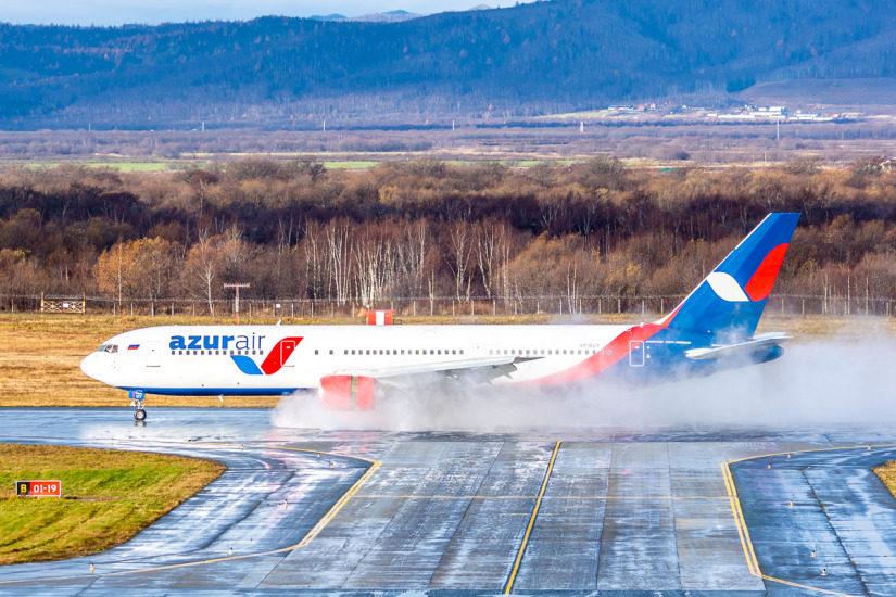 Вооружившись ноябрьскими красками, дождь и солнце соревновались в мастерстве, раскрашивая небо главной воздушной гавани Сахалина. Boeing 767-300 авиакомпании Azur Аir стремительно ворвался в разноцветие сахалинского неба и приземлился в аэропорту областной столицы, оставив за собой шлейф дождевой воды.