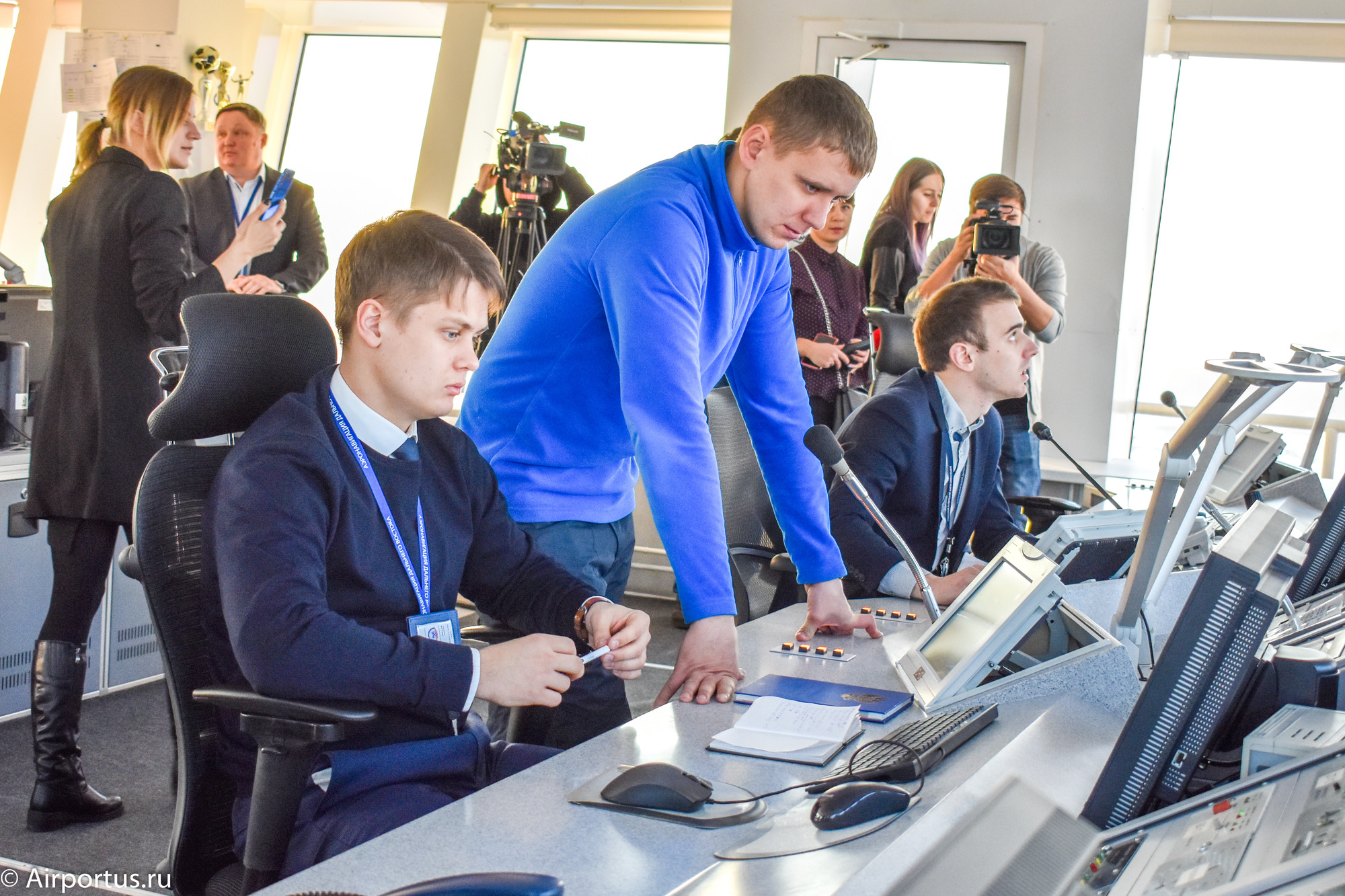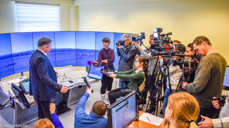 Лаптев Евгений, начальник АДЦ, представил журналистам единственный в России тренажер – последняя модель, на плазменных мониторах.15-20 лет назад тренажеров не было.