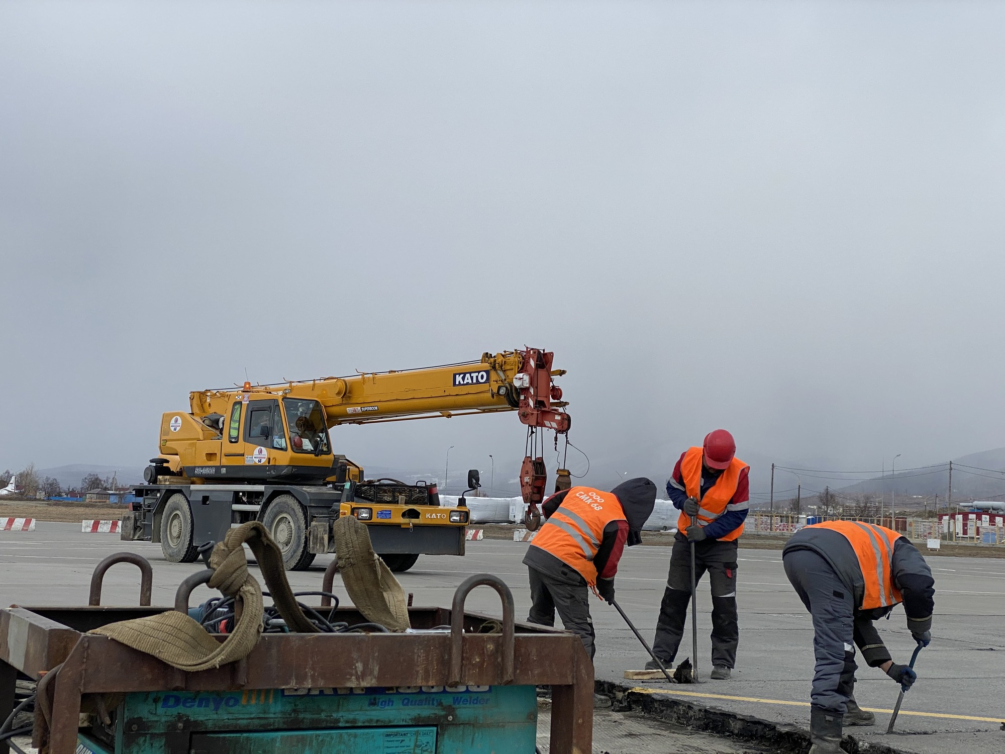 По результатам тендера, проведенного АО «Аэропорт Южно-Сахалинск» в конце прошлого года, на выполнение строительно-монтажных работ по объекту «Реконструкция пассажирского перрона в аэропорту Южно-Сахалинск», победителем – генеральным подрядчиком было признано предприятие ООО «СМК № 68». Строительство перрона нового пассажирского терминала является завершающим этапом реконструкции аэродрома главной воздушной гавани, начатой более десяти лет назад.