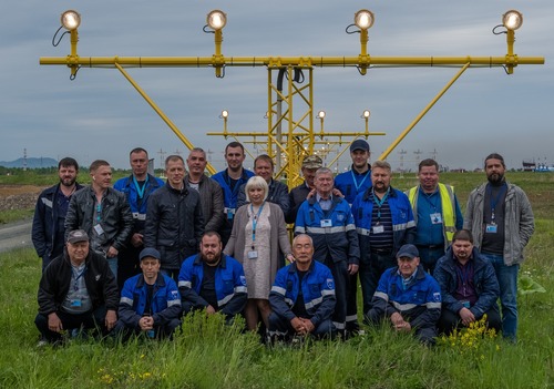 Коллектив службы ЭСТОП у огней приближения в зоне подхода самолета к ИВПП