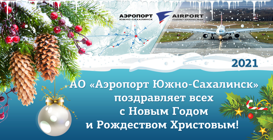 От имени коллектива АО «Аэропорт Южно-Сахалинск» и от себя лично, сердечно поздравляю вас с наступающим Новым годом и Рождеством Христовым!