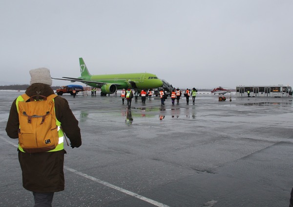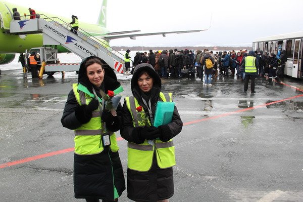 Времена меняются, а женщины в России все те же — остаются надежным тылом страны. Руководство островной воздушной гавани накануне праздника организовало большой мартовский пресс-тур для журналистов и споттеров. Пока шла смена экипажей, мы побывали на борту самолетов авиакомпаний S7 Airlines и «Россия», встретились с девушкой-пилотом DHC-8 авиакомпании «Аврора», а также с теми, кто обеспечивает связь самолетов с землей и безопасность.