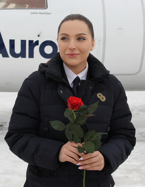 Александра Брайченко, второй пилот DHC-8 авиакомпании «Аврора», прописана в Санкт-Петербурге, выросла и живет в Южно-Сахалинске, в профессии 4,5 года (2,5 тысячи часов налетов)