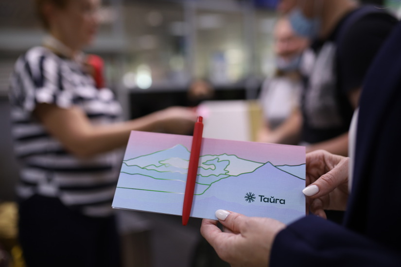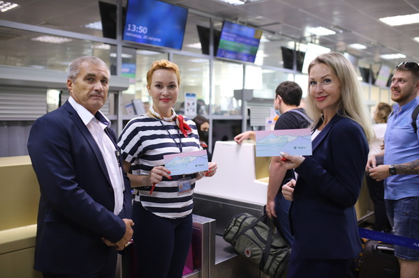 Авиакомпания совместно с аэропортом вручили памятные сувениры первым пассажирам.